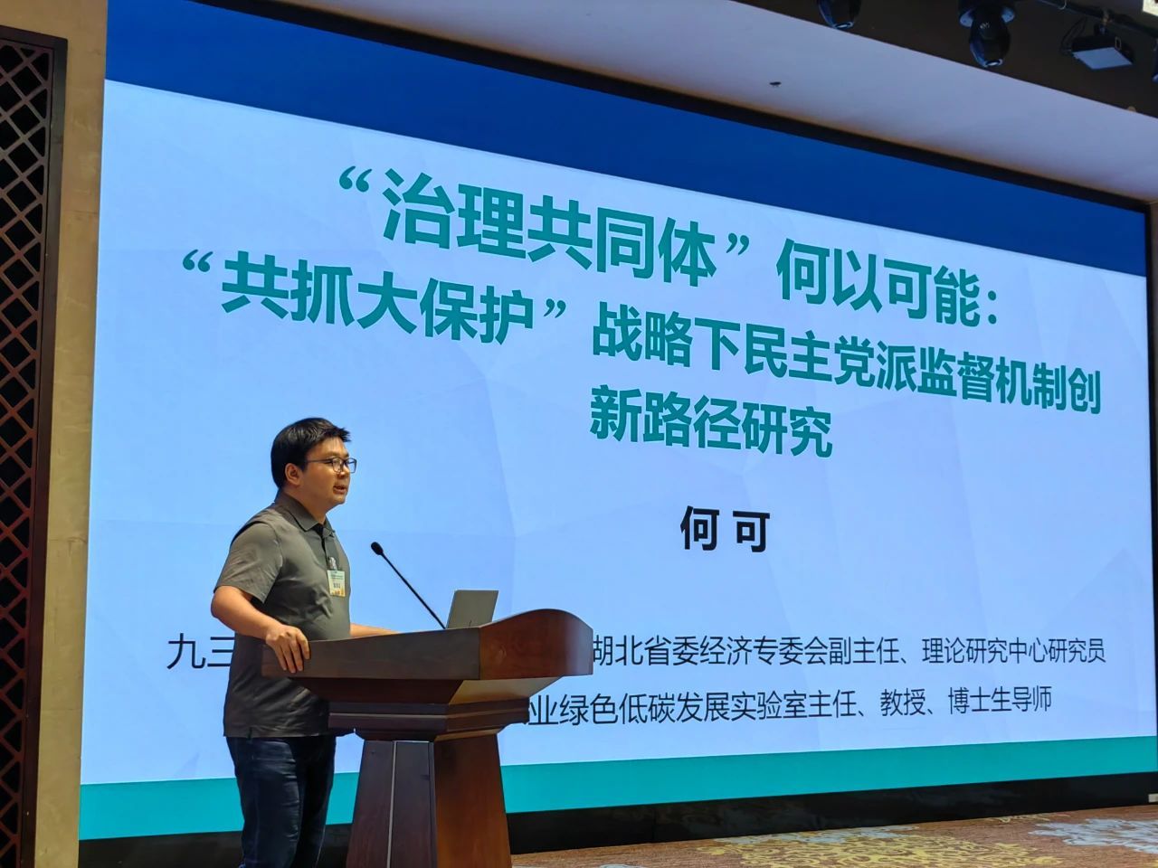 华中农业大学农业绿色低碳发展实验室主任、九三学社中央农林专委会委员、湖北省委经济专委会副主任何可教授受邀作题为《“治理共同体”何以可能:“共抓大保护”战略下民主党派监督机制创新路径研究》的大会报告,为长江生态环境保护的制度创新与实践突破提供思路。