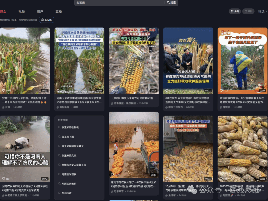 也许是大数据算法的缘故,最近在抖音等社交媒体,刷到了很多“农村掰玉米”的短视频。这不是什么最新的互联网流量,只是恰逢假期,返乡大学生们用他们的手机记录下的最真实的收玉米场景:全副武装、头戴草帽、长袖长裤,走进田埂、开启摘玉米的劳作。