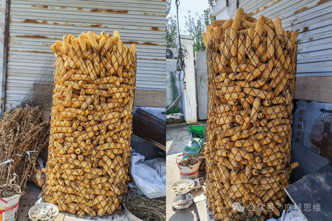 接下来,是晒玉米。这是一个有劳动门槛的活:用铁丝网搭建一个圆柱形的zhàn子(似乎没有一个官方名称),把玉米放入其中。这是千百年来劳动人民智慧的最佳呈现——既可以最大化的晒到玉米,又能占最小地方,还能在下雨时迅速给玉米遮雨。当把所有的玉米都放入其中时,这一年的玉米收获就算告一段落了。剩下的活就是给玉米脱粒,现代化设备就可以完成,以及最后的卖玉米。